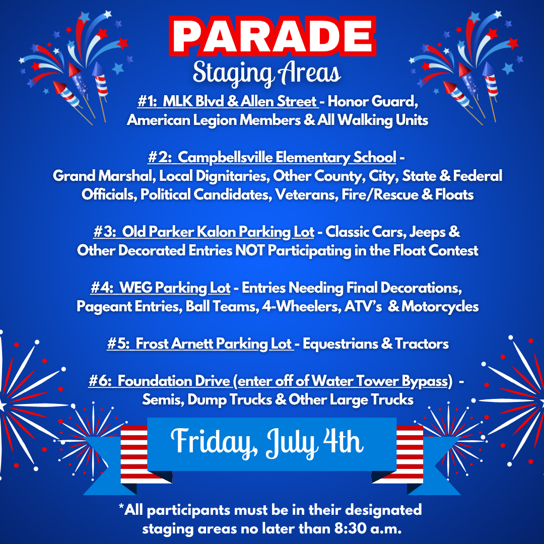 The parade route will be staffed with our Committee VOLUNTEERS who give of their time freely to ensure that the parade route flows smoothly and that all participants are adhering to these rules. Remember, our volunteers are here for you and want everyone to be safe and enjoy themselves. Be sure to share these rules to help us spread the word. Be sure to check out social media outlets for weekly updates and information on this year’s parade, brought to you by Taylor Regional Hospital!